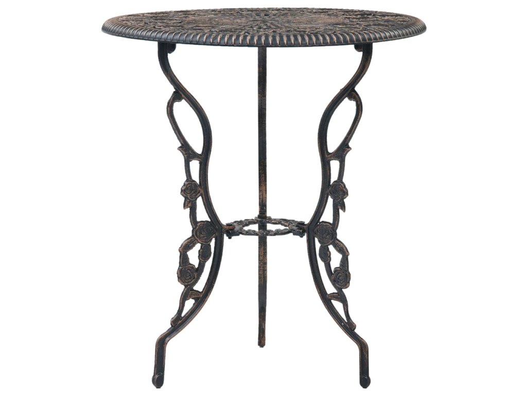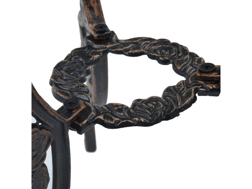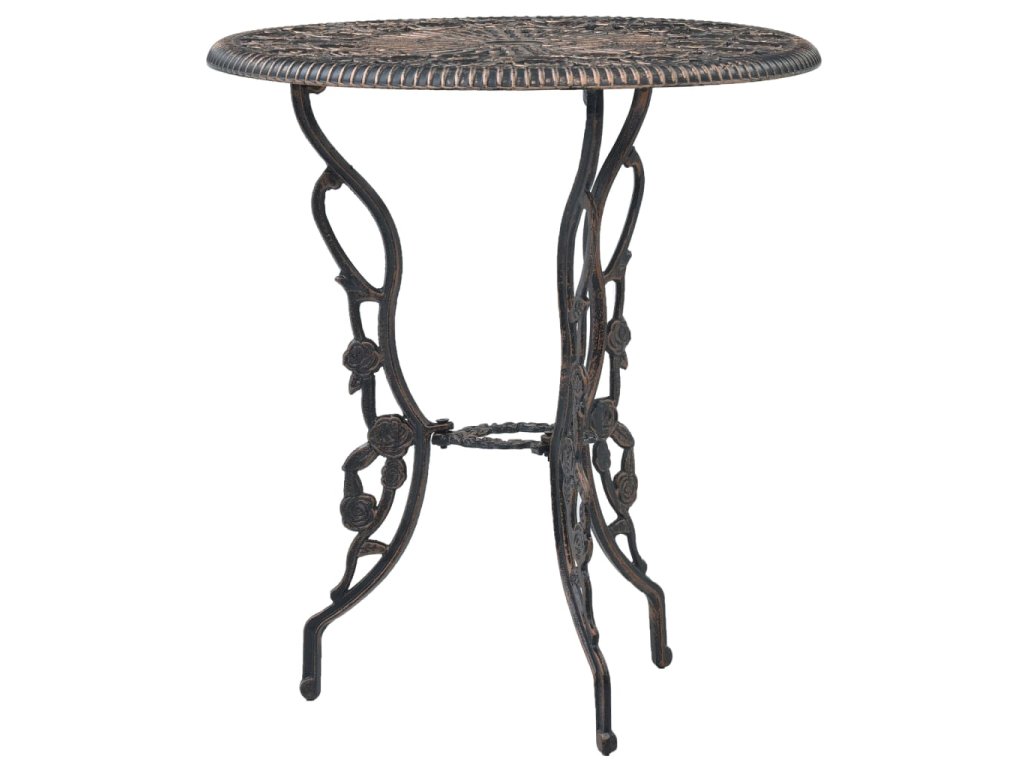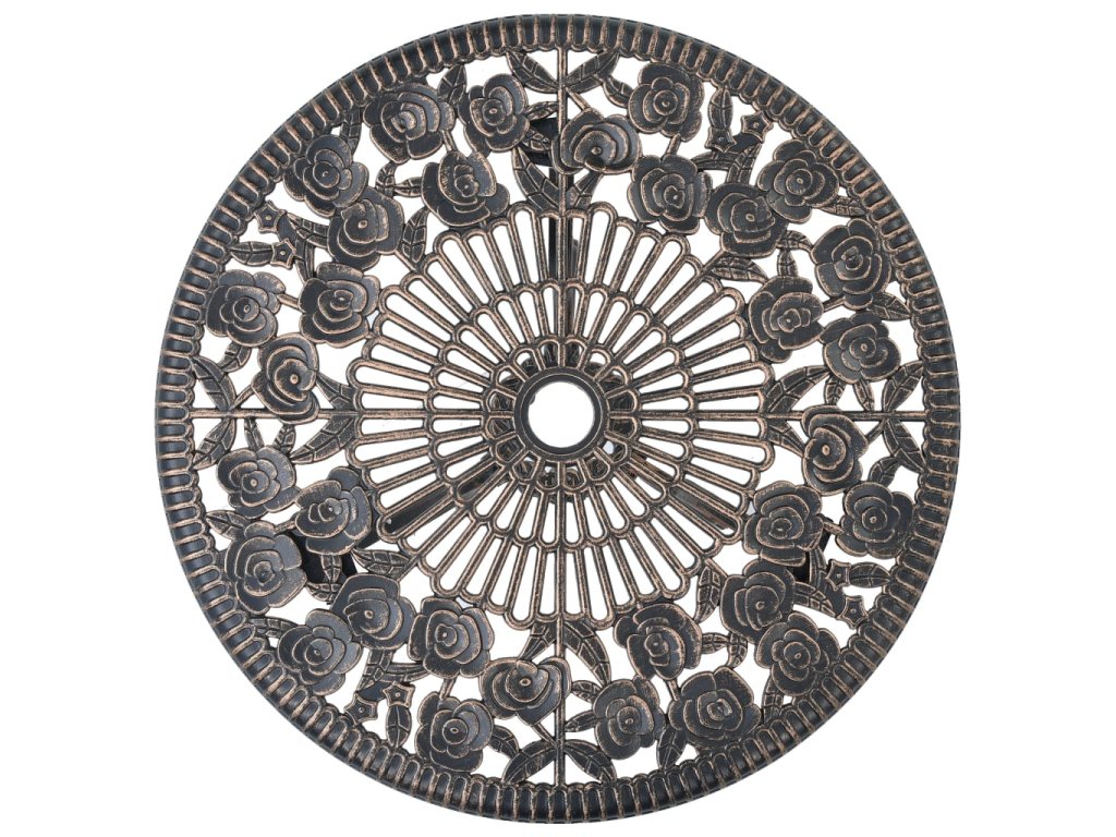 Zahradní stolek a židle jsou vyrobené z vysoce odolného litého hliníku, který je odolný vůči povětrnostním vlivům a má dlouhou životnost. Litinové nohy dodávají nábytku na robustnosti. Do detailu propracovaný květinový vzor oživí každou zahradu, dvůr či zimní zahradu romantickým nádechem.