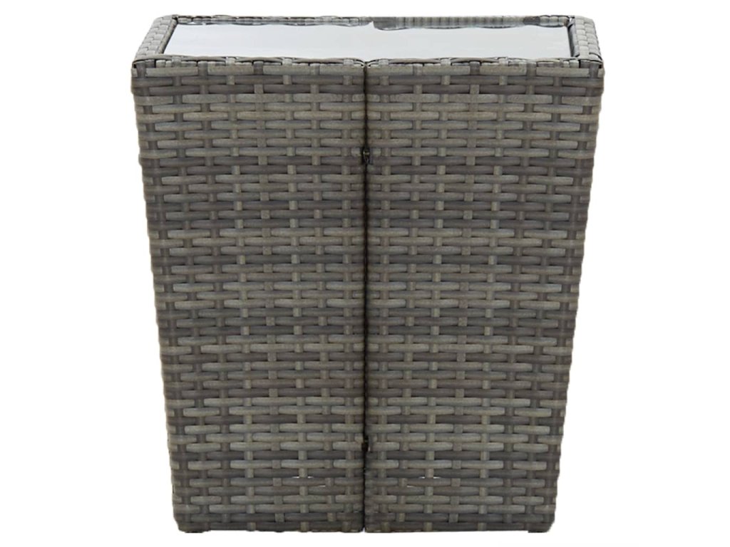 - Materiál: polyratan, ocel, látka (100% polyester), tvrzené sklo