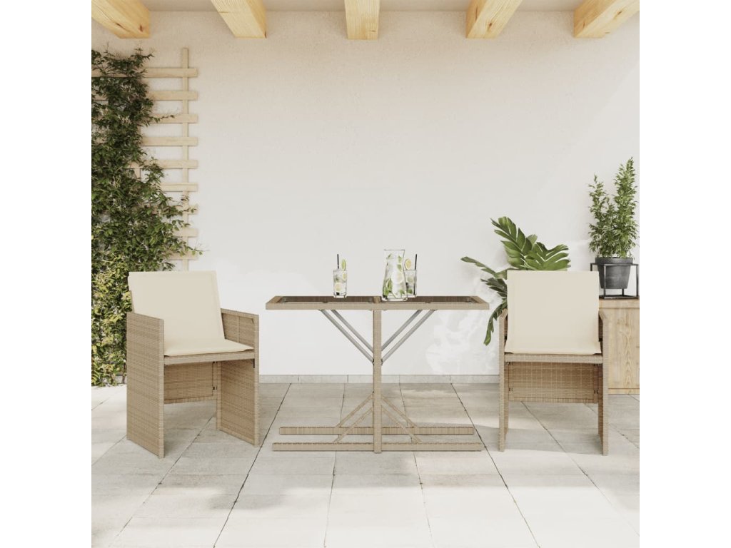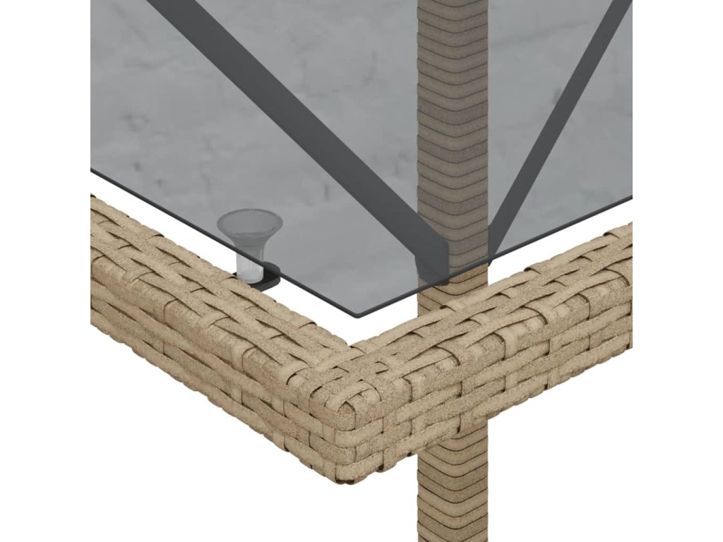 - Skleněná deska stolu: Deska venkovního stolu je zhotovena ze silného a odolného tvrzeného skla, takže ji snadno očistíte vlhkým hadříkem a zároveň do vašeho venkovního prostoru vnese nádech elegance.