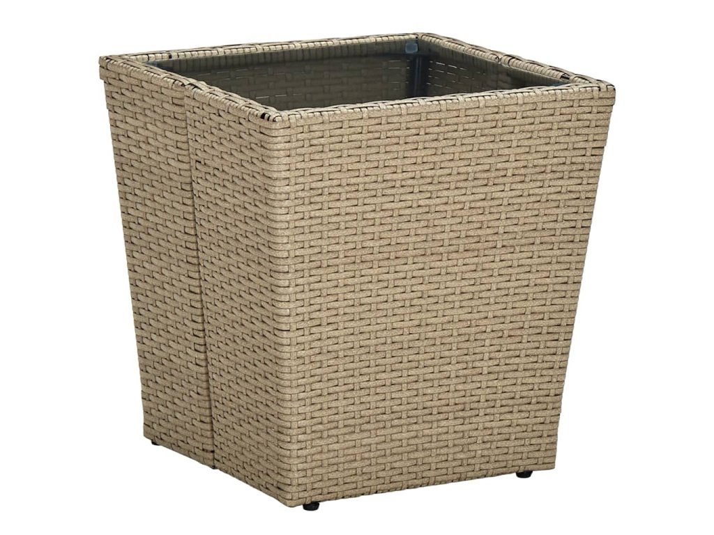 - Materiál: PE ratan, práškově lakovaná ocel, tvrzené sklo