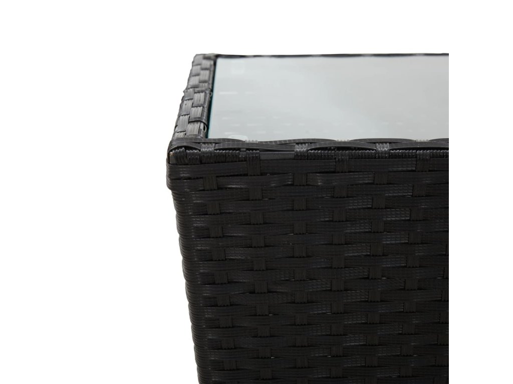 - Materiál: PE ratan, práškově lakovaná ocel, tvrzené sklo