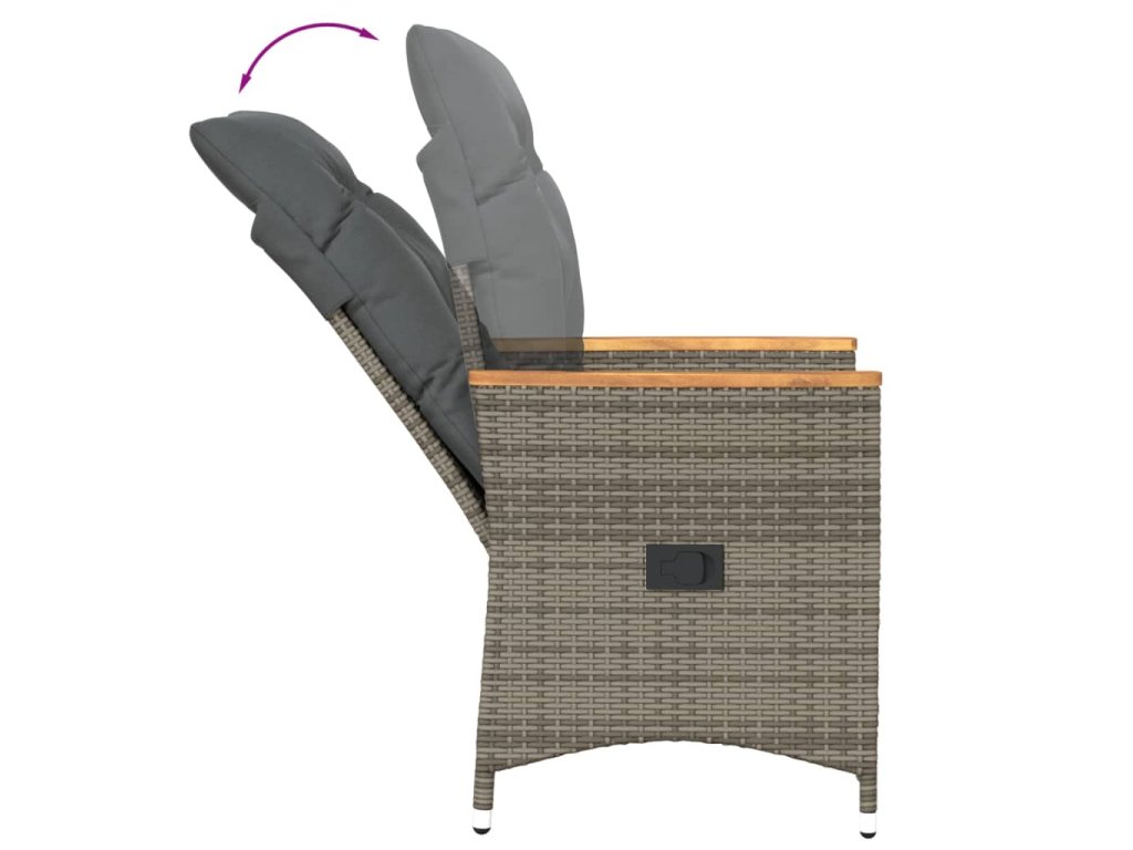 - Materiál: PE ratan, práškově lakovaná ocel, masivní akáciové dřevo s olejovou povrchovou úpravou