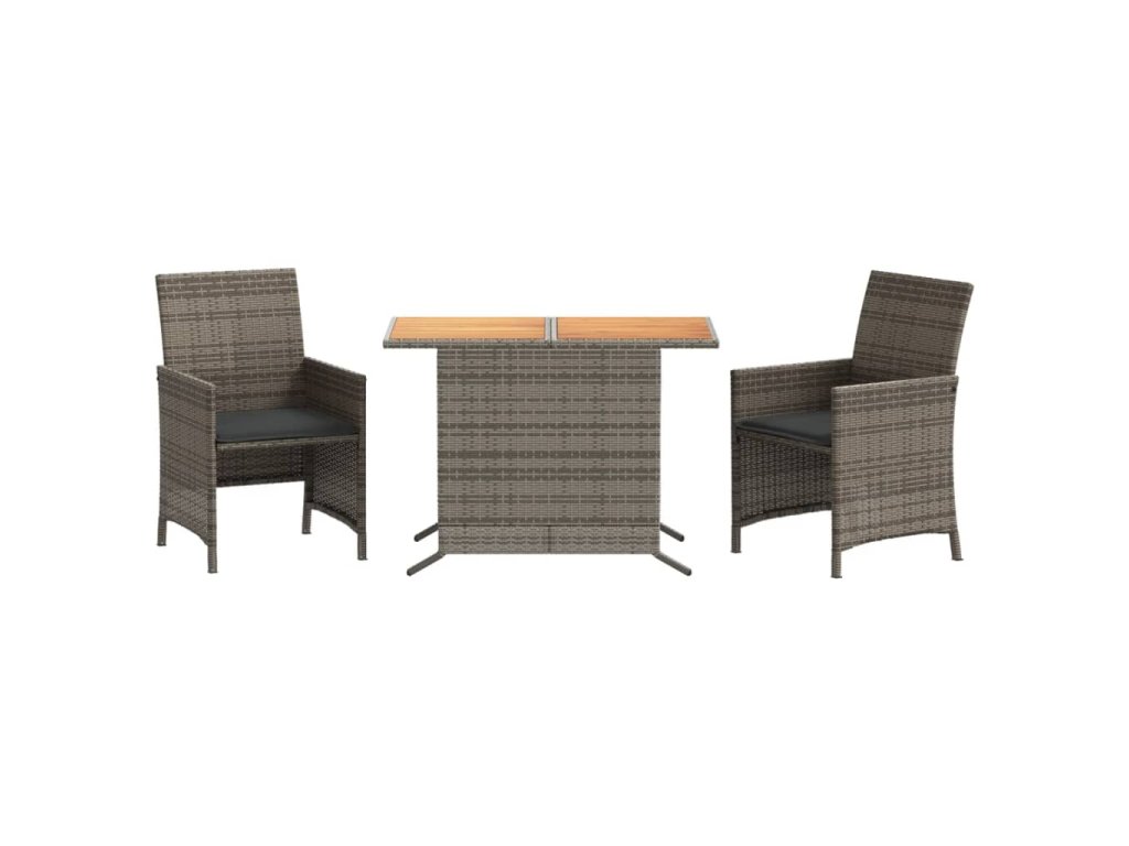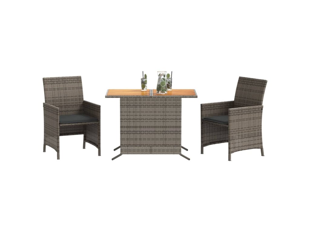 - Materiál: PE ratan, práškově lakovaná ocel, masivní akáciové dřevo s olejovou povrchovou úpravou