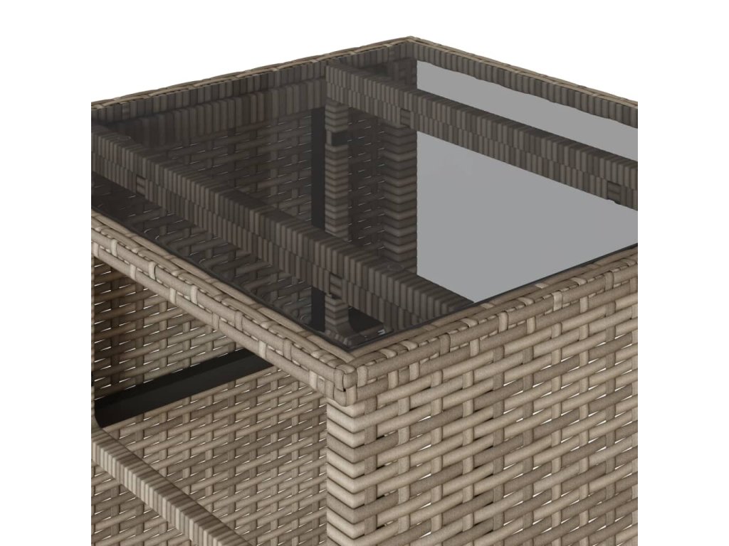 - Materiál: PE ratan, práškově lakovaná ocel, tvrzené sklo