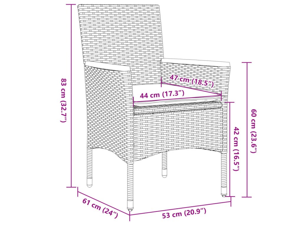 - Materiál: PE ratan, práškově lakovaná ocel, masivní akáciové dřevo s olejovou povrchovou úpravou