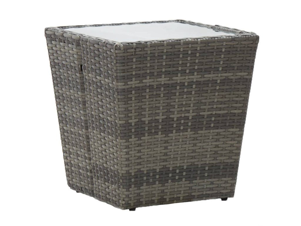 - Materiál: PE ratan, práškově lakovaná ocel, tvrzené sklo