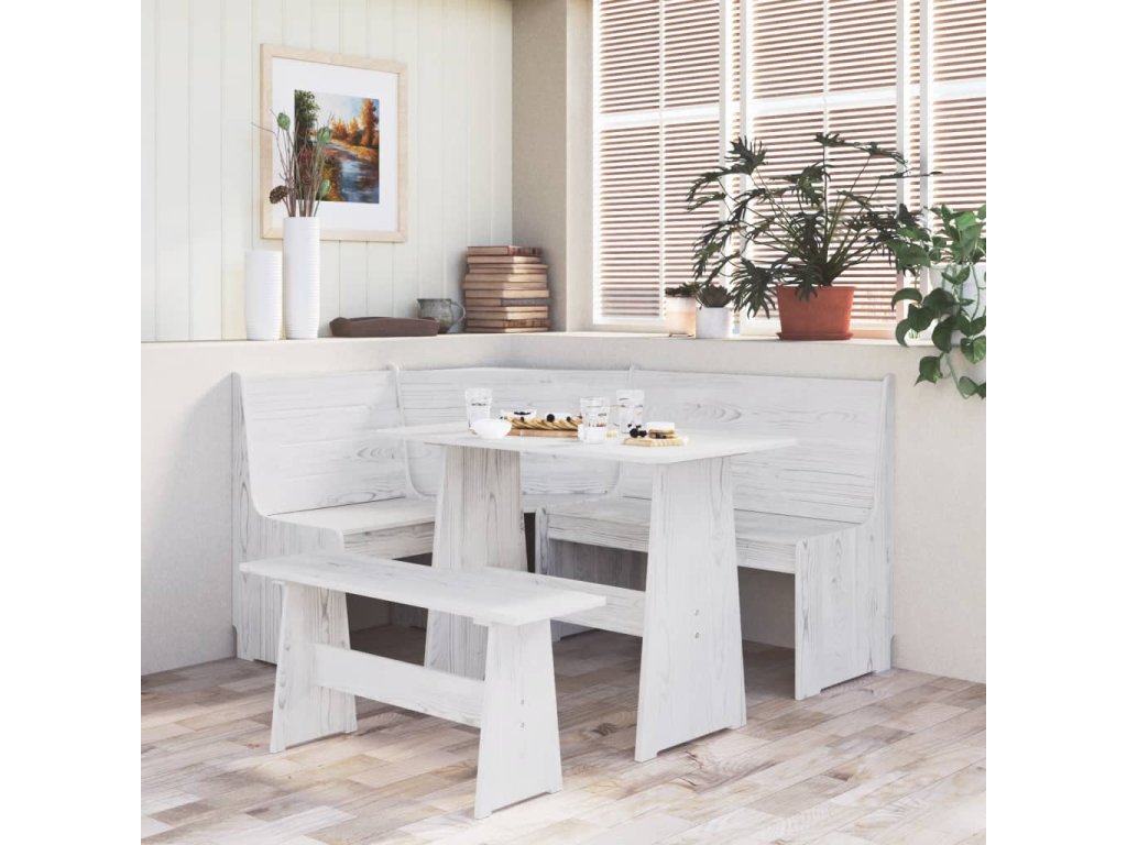 Jídelní set je vyrobený z masivního borového dřeva a vyniká svou dlouhou životností. Opěradlo rohové lavice přispívá k vašemu pohodlí při sezení. Dlouhou lavici lze navíc sestavit na levou i pravou stranu, takže vyhoví vašim konkrétním potřebám. Stůl je ideální pro servírování jídel a nápojů. Je perfektní ke stolování nebo jako skvělé místo k vypracování domácích úkolů nebo různých domácích projektů.