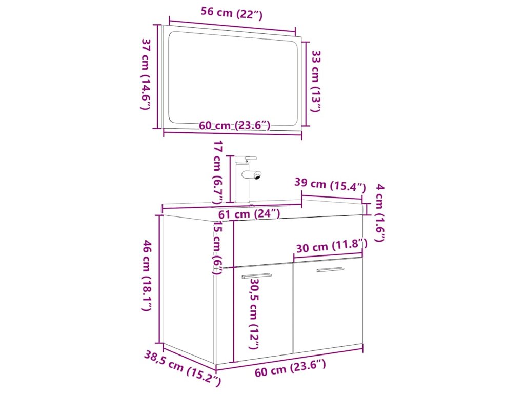 - Rozměry skříňky pod umyvadlo: 60 x 38,5 x 46 cm (Š x H x V)