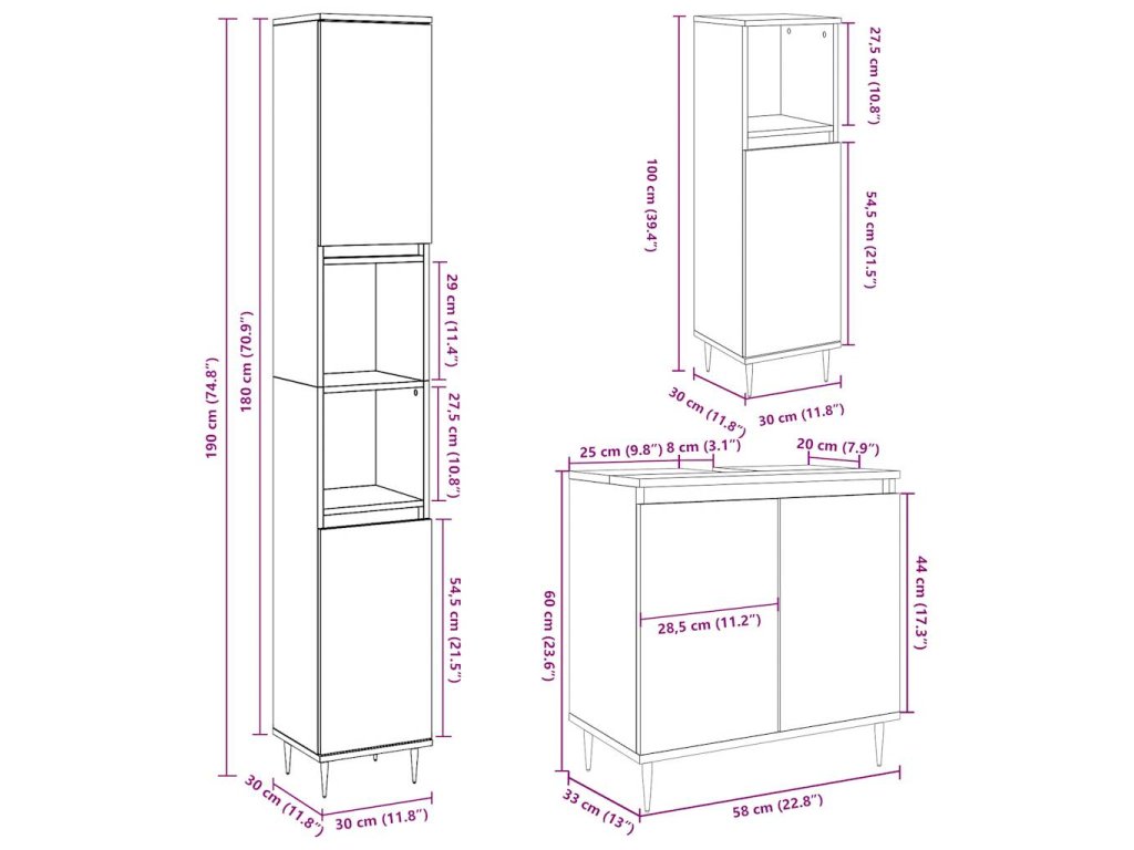 - Rozměry koupelnové skříňky (L): 30 x 30 x 190 cm (Š x H x V)