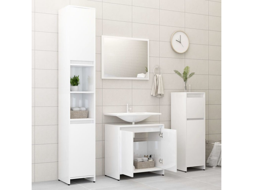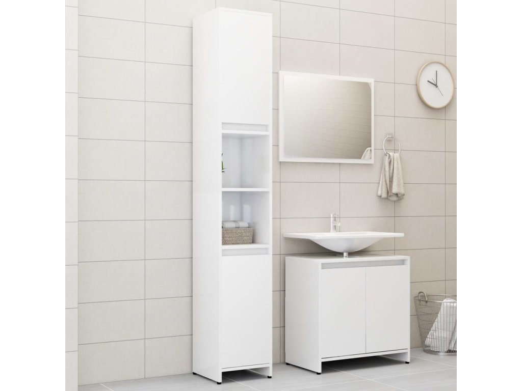 Tato stylová sada nábytku do koupelny sestává z 1 vysoké skříně, 1 skříňky pod umyvadlo a 1 zrcadla. Pomůže vám ve vaší koupelně vytvořit mnohem více úložného prostoru a zároveň jí dodá nádherně uspořádaný vzhled.