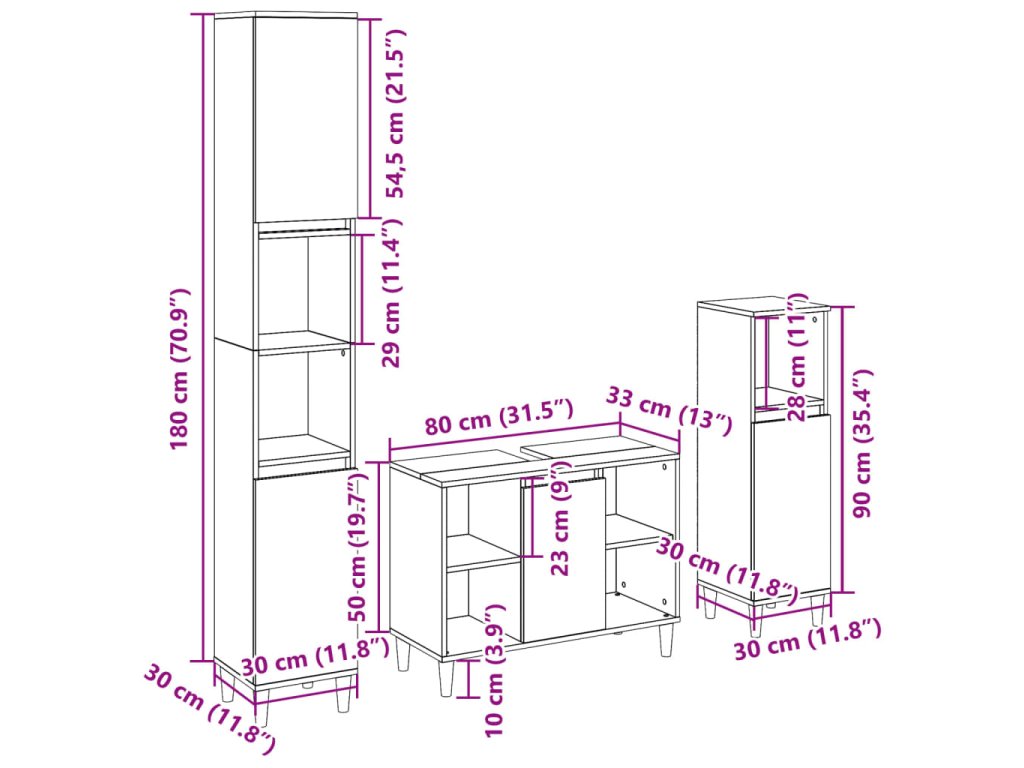 - Rozměry umyvadlové skříňky: 80 x 33 x 60 cm (Š x H x V)