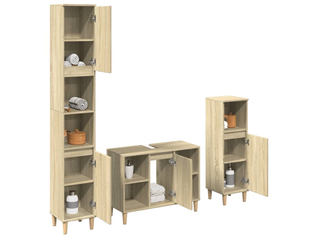 - Spousta úložného prostoru: Tento koupelnový nábytek nabízí spoustu místa k uložení vašich základních hygienických potřeb a toaletních produktů, jako jsou mýdla, šampony, zubní pasty apod.