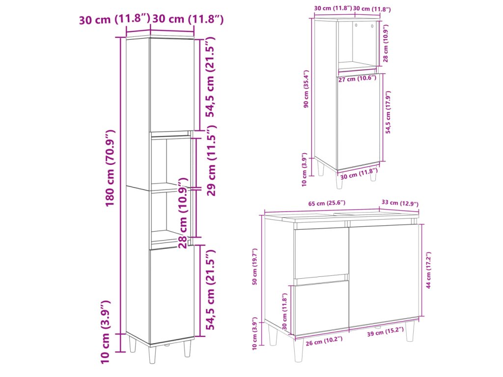 - Rozměry koupelnové skříňky (S): 30 x 30 x 100 cm (Š x H x V)