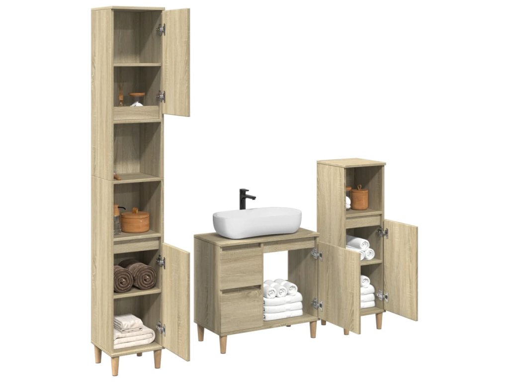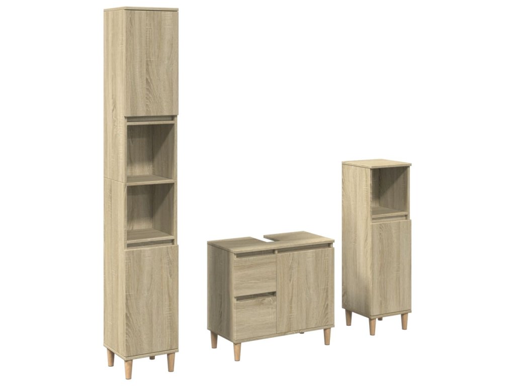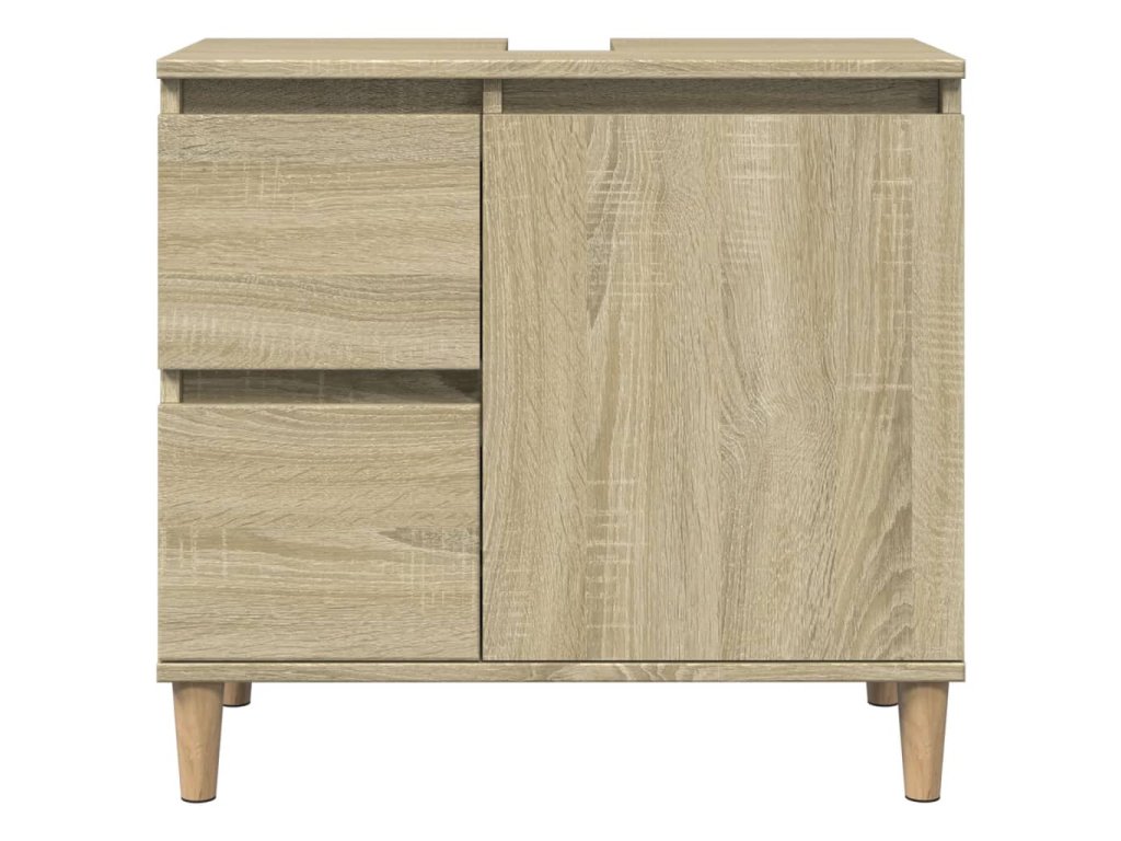- Robustní konstrukce: Nožičky z masivního eukalyptového dřeva dodávají koupelnové skříňce přirozený a příjemný vzhled a zároveň zajišťují stabilitu.