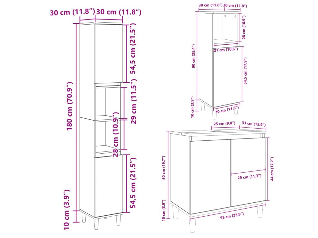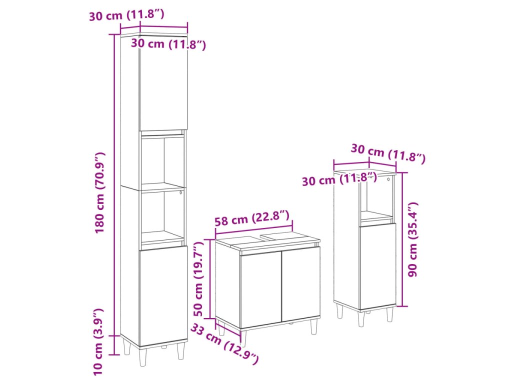 - Rozměry koupelnové skříňky (S): 30 x 30 x 100 cm (Š x H x V)