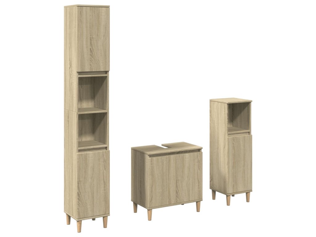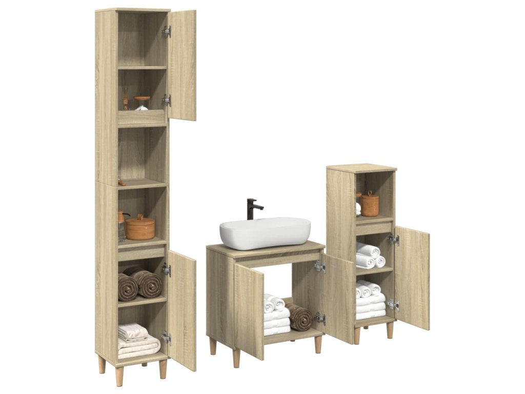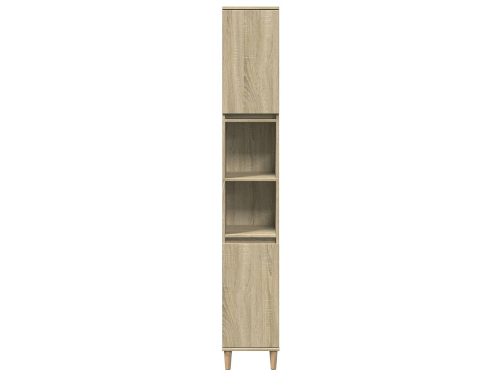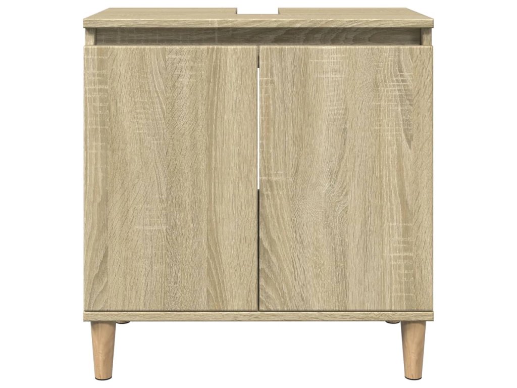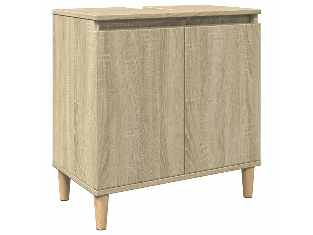 - Robustní konstrukce: Nožičky z masivního eukalyptového dřeva dodávají koupelnové skříňce přirozený a příjemný vzhled a zároveň zajišťují stabilitu.