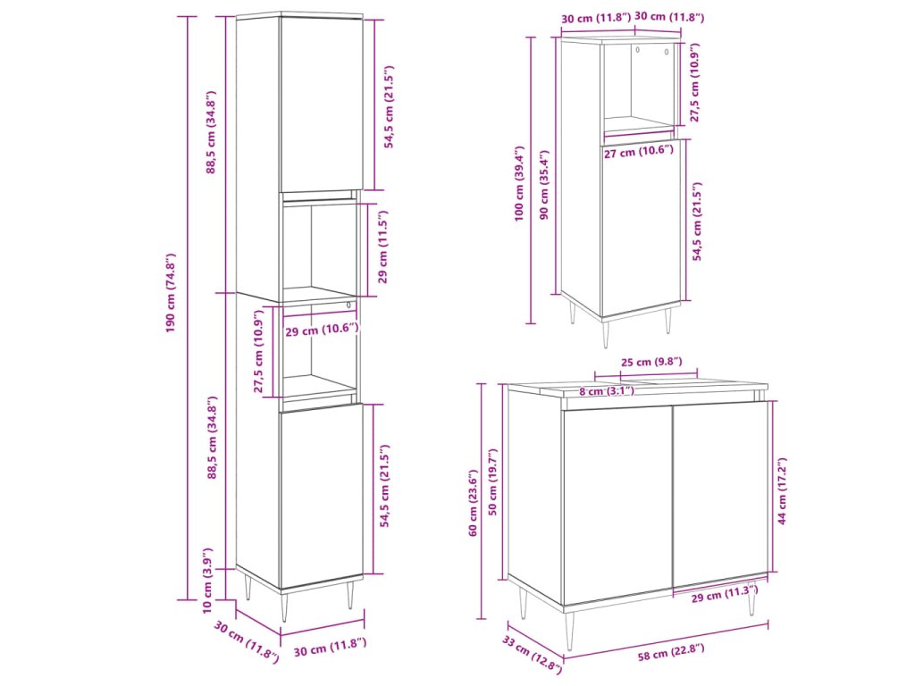 - Rozměry koupelnové skříňky (L): 30 x 30 x 190 cm (Š x H x V)