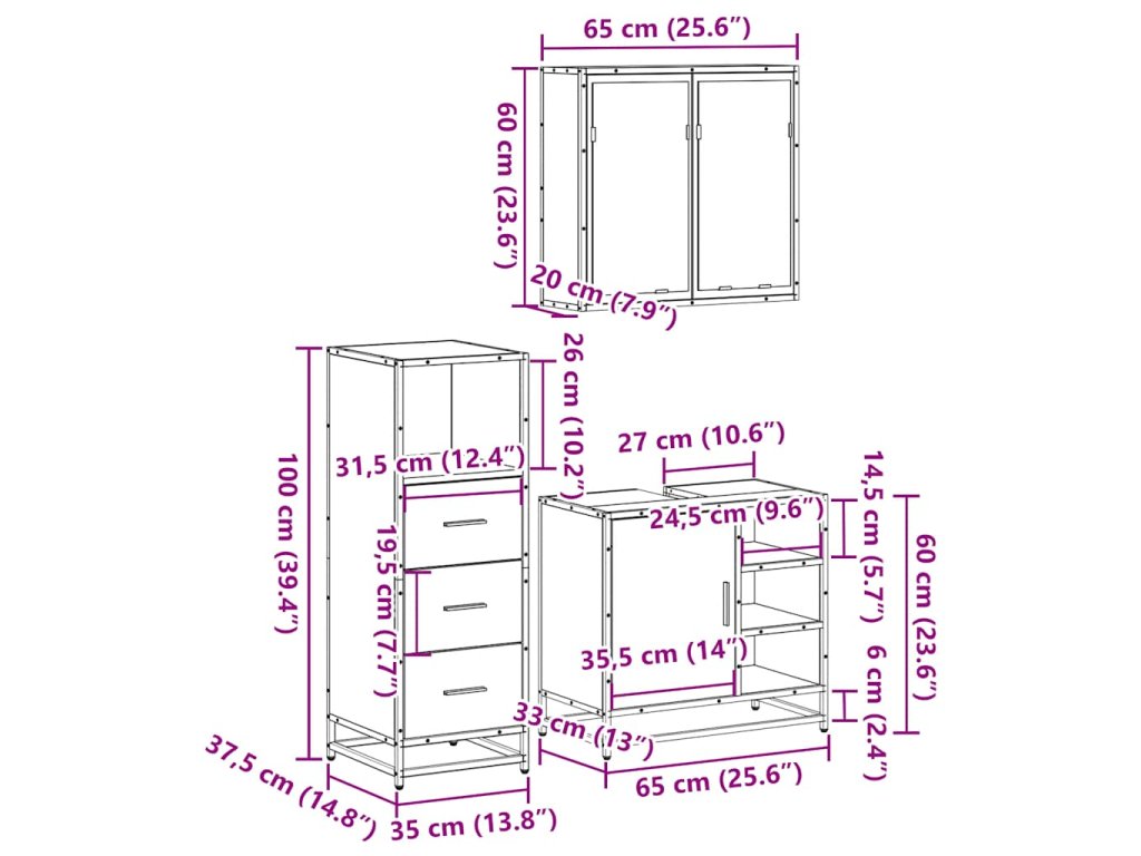 - Rozměry koupelnové zrcadlové skříňky: 65 x 20 x 60 cm (Š x H x V)