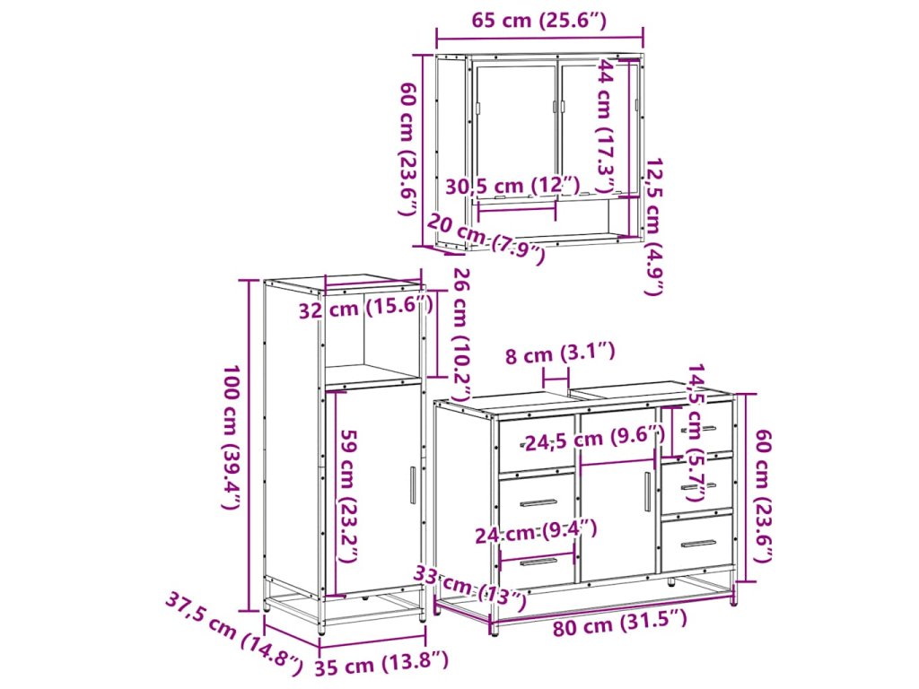 - Rozměry koupelnové skříňky s umyvadlem: 80 x 33 x 60 cm (Š x H x V)