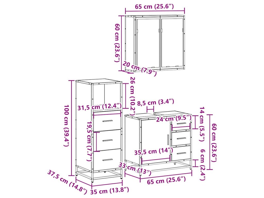 - Rozměry koupelnové zrcadlové skříňky: 65 x 20 x 60 cm (Š x H x V)