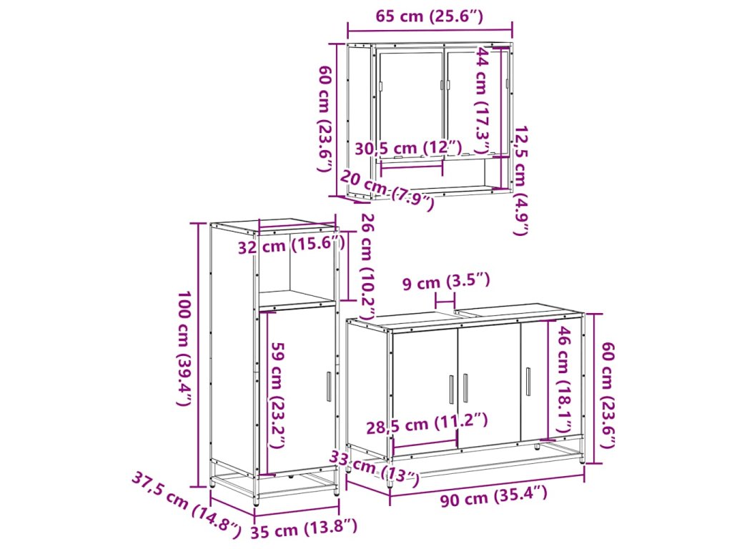 - Rozměry koupelnové skříňky: 35 x 37,5 x 100 cm (Š x H x V)