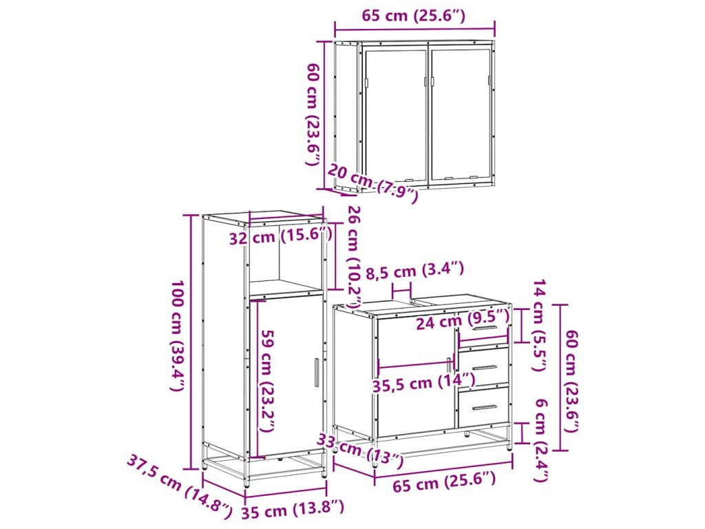 - Rozměry koupelnové zrcadlové skříňky: 65 x 20 x 60 cm (Š x H x V)