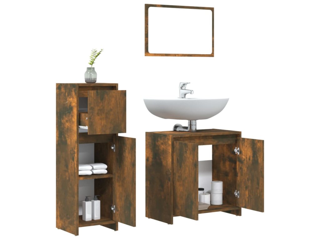 Tato atraktivní sada koupelnových skříněk s velkým úložným prostorem se vyznačuje stylovým i praktickým designem.