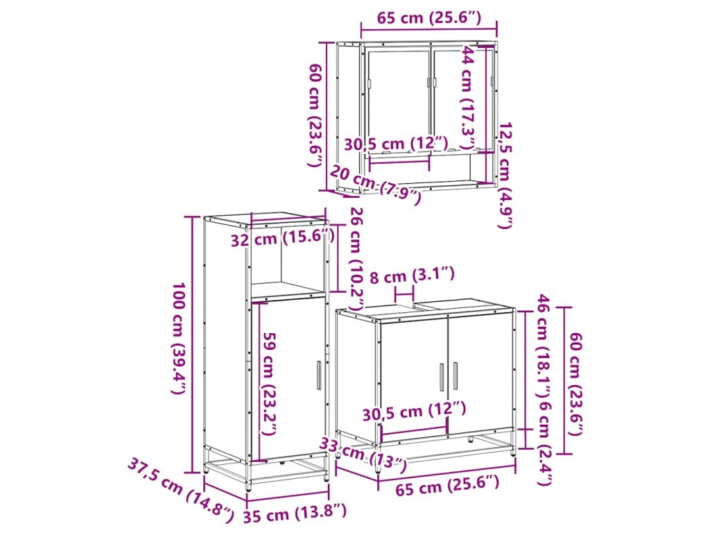 - Rozměry koupelnové skříňky: 35 x 37,5 x 100 cm (Š x H x V)