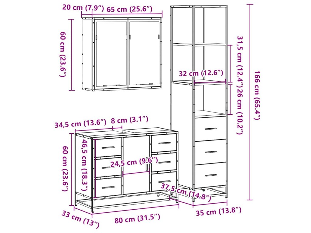- Rozměry koupelnové skříňky: 35 x 37,5 x 166 cm (D x Š x V)