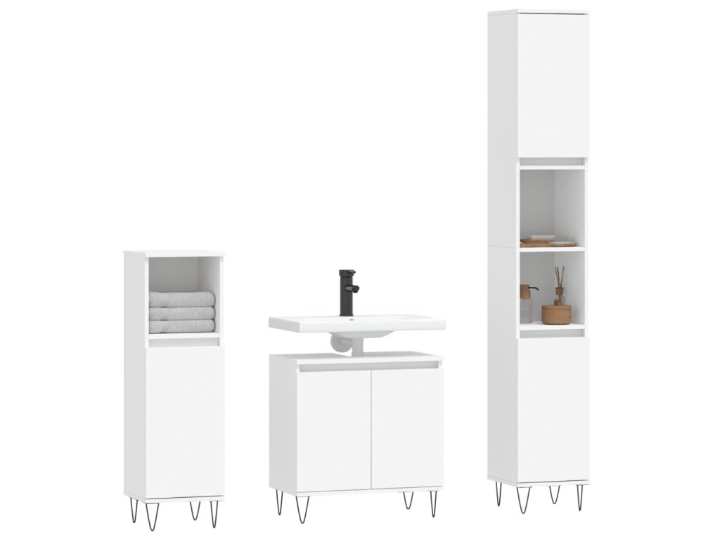 Tato atraktivní sada koupelnových skříněk s velkým úložným prostorem se vyznačuje stylovým i praktickým designem.