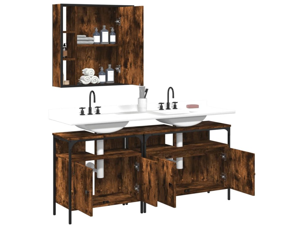 Tato atraktivní sada koupelnových skříněk s velkým úložným prostorem se vyznačuje stylovým i praktickým designem.