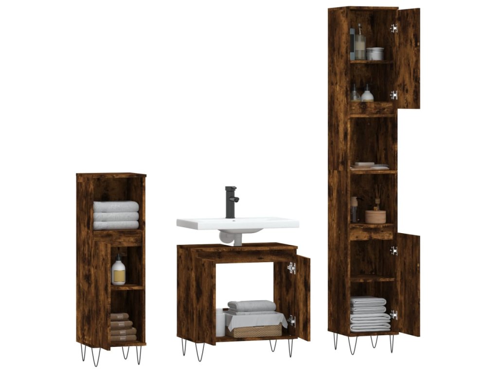 Tato atraktivní sada koupelnových skříněk s velkým úložným prostorem se vyznačuje stylovým i praktickým designem.