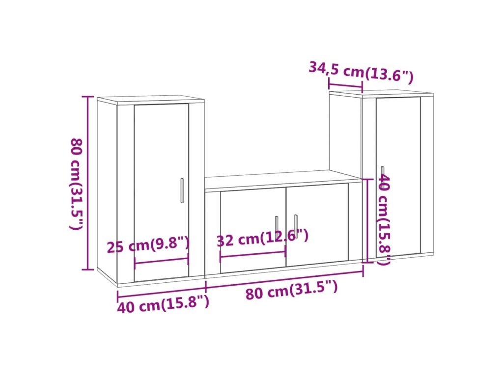 - 1x TV skříňka: 80 x 34,5 x 40 cm (D x Š x V)