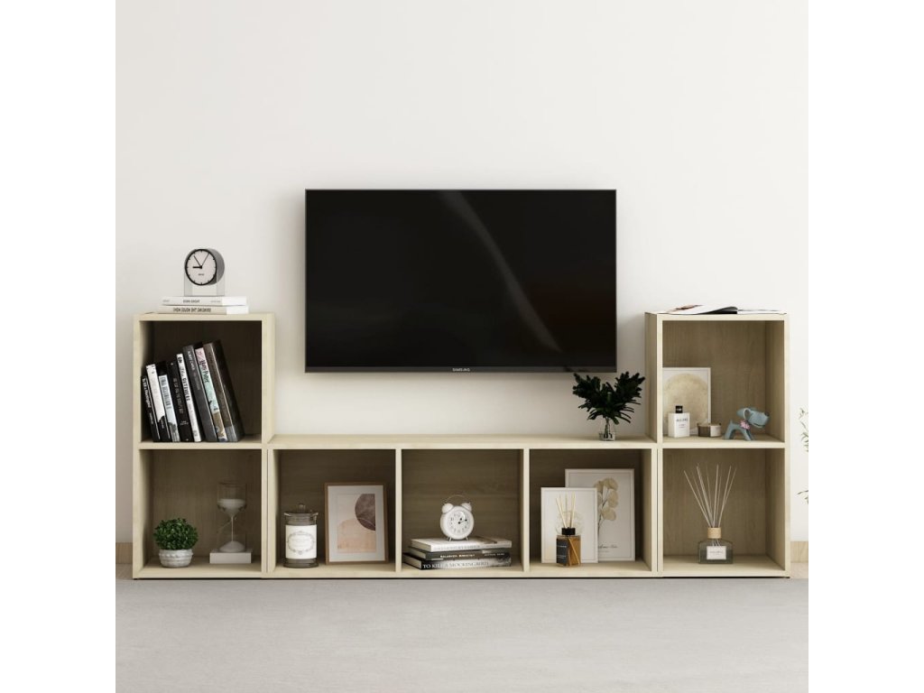 Set TV skříněk nabízí spoustu úložného prostoru pro přehledné uspořádání vašich časopisů, knih, DVD a multimediálních zařízení, které chcete mít vždy po ruce. Každou televizní skříňku lze navíc umístit vodorovně nebo svisle, takže bude dokonalým doplňkem do vašeho obývacího pokoje. Navíc se snadno čistí vlhkým hadříkem.