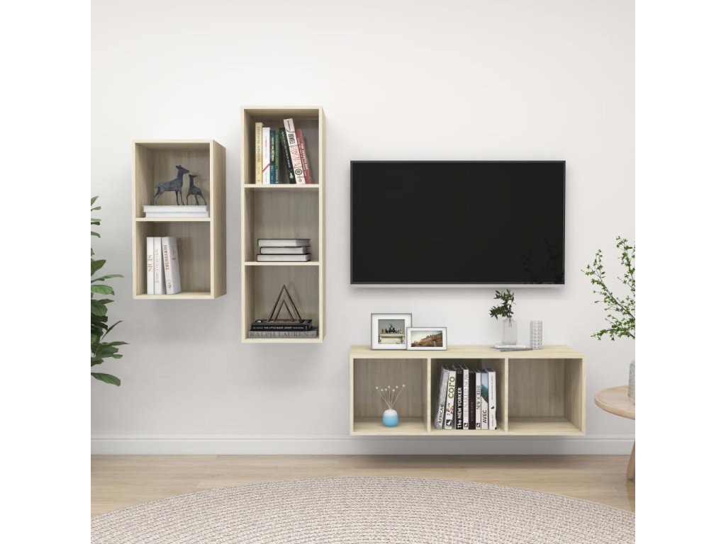 TV skříňky se připevňují ke zdi a vnesou do vašeho domova nadčasový styl. Jsou ideální pro přehledné ukládání a vystavení všech věcí, které si přejete mít hezky po ruce. Sada stereo skříněk se snadno čistí vlhkým hadříkem.
