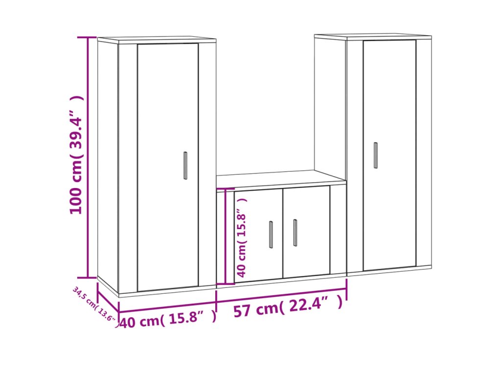 - 2x TV skříňka: 40 x 34,5 x 100 cm (Š x H x V)