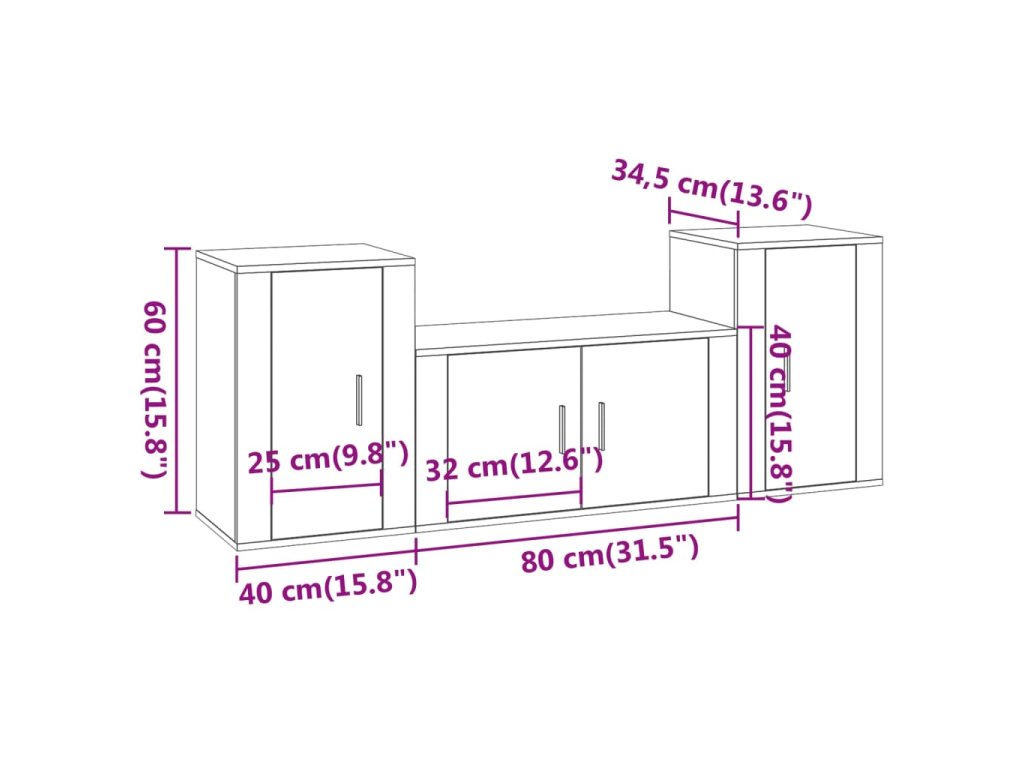 - 1x TV skříňka: 80 x 34,5 x 40 cm (D x Š x V)