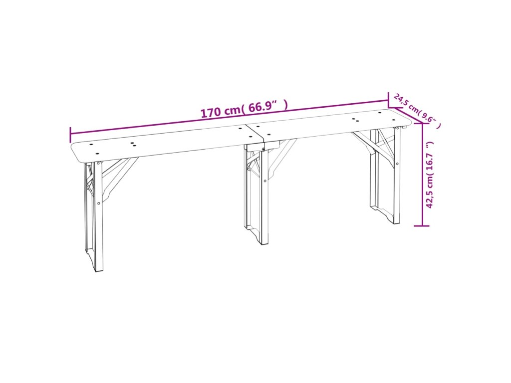 - Rozměry lavice (každý kus): 170 x 24,5 x 42,5 cm (D x Š x V)