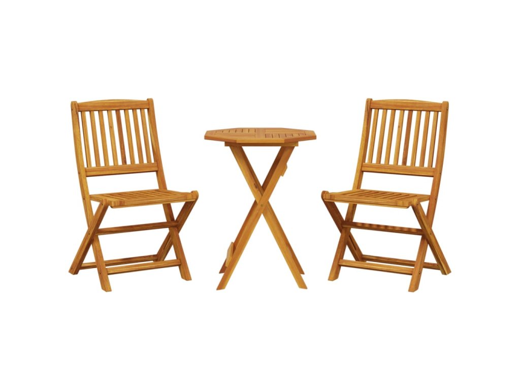 - Ventilace: Tento venkovní bistro set s lamelovou konstrukcí umožňuje odtékání vody, takže dřevo nehnije a má dlouhou životnost.