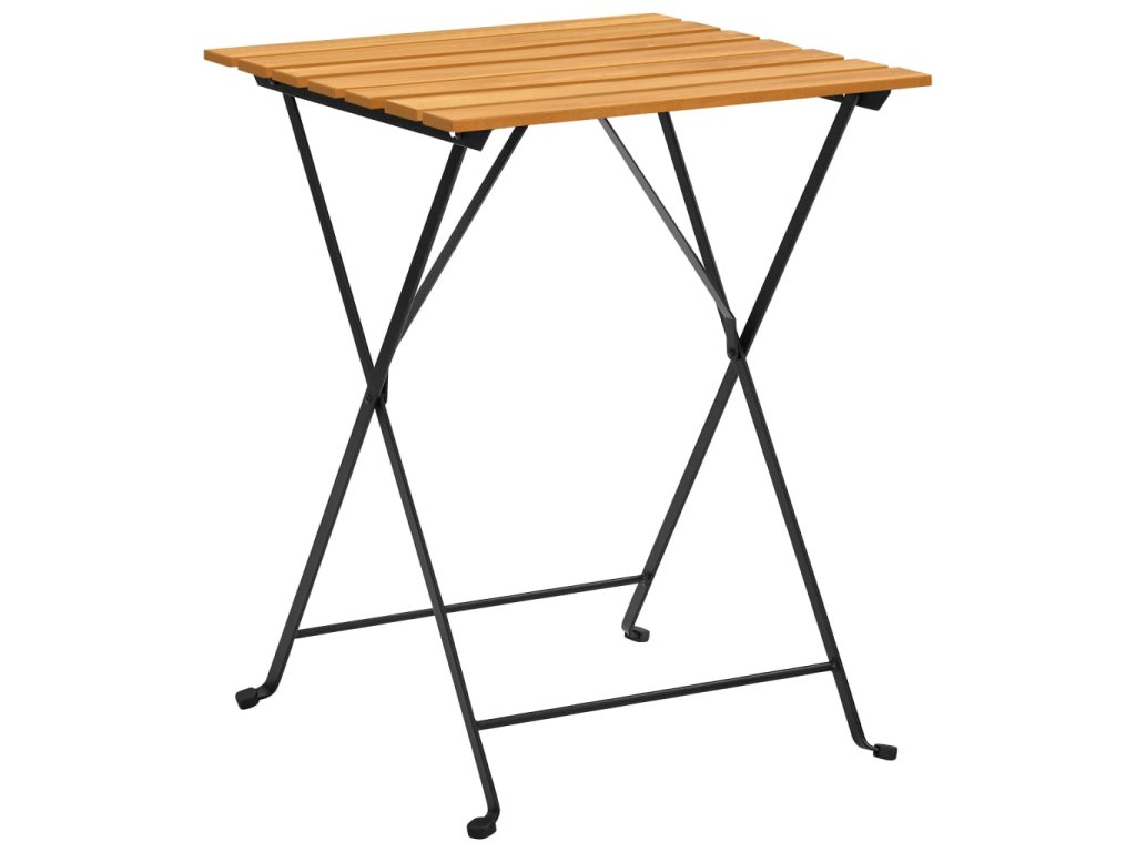 Stůl a židle jsou vyrobené z masivního akáciového dřeva a robustní oceli, a proto je tento set odolný proti povětrnostním vlivům a má dlouhou životnost. Pokud potřebujete ušetřit místo a set zrovna nepoužíváte, můžete stůl i židle složit. Celý set je ideální volba pro venkovní stolování na vašem balkonu, zahradě nebo terase.