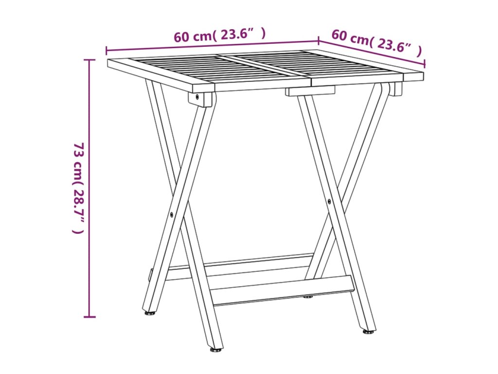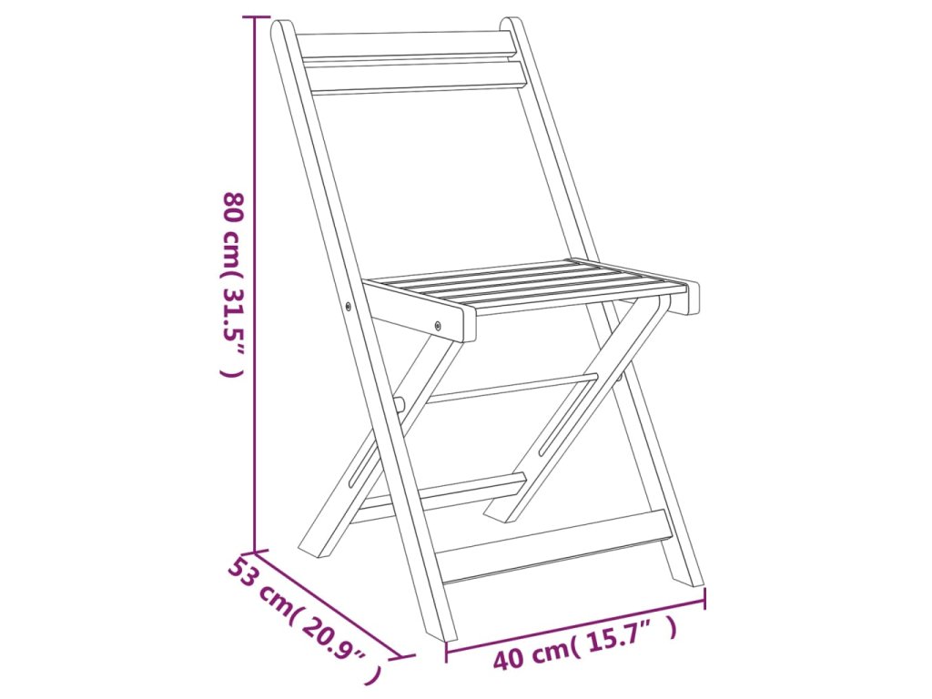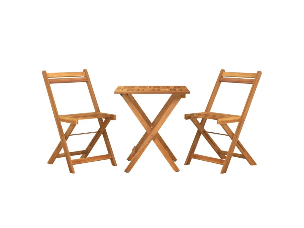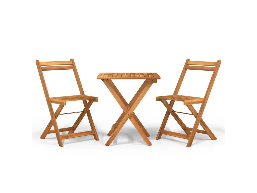 Tento dřevěný skládací bistro set, vyrobený z masivního akáciového dřeva, je vynikající volbou pro stolování nebo odpočinek na zahradě.