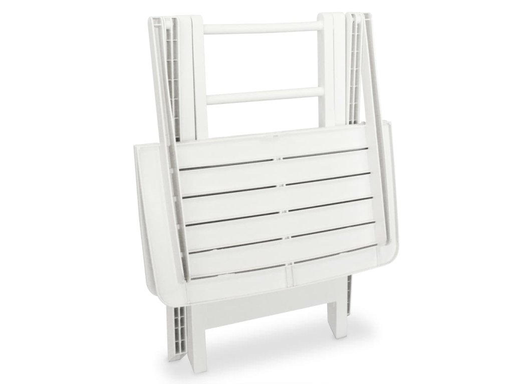 Tato jídelní sada venkovního nábytku je vyrobena z odolného plastu. Je proto odolná vůči povětrnostním vlivům a velmi snadno se čistí. Stůl i židle se dají složit, když je zrovna nepoužíváte, aby nepřekážely.