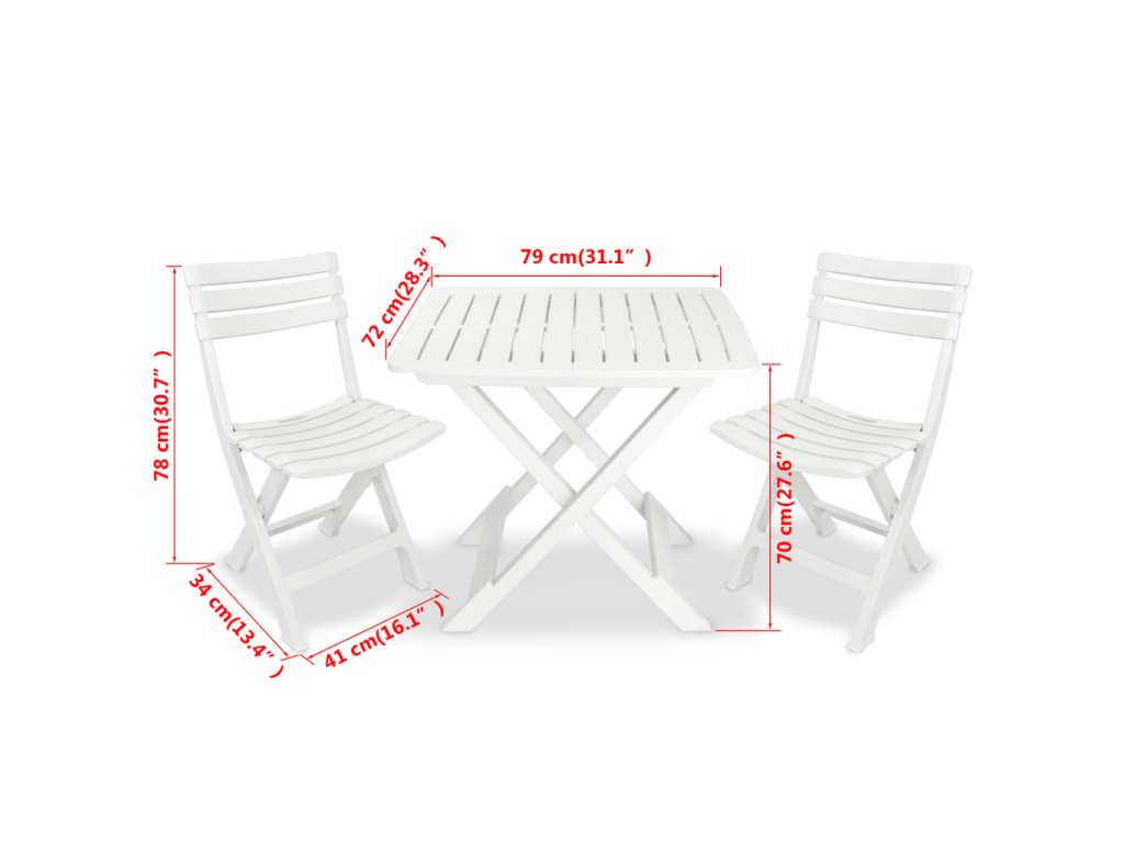 Balení obsahuje 1 skládací stůl a 2 skládací židle.