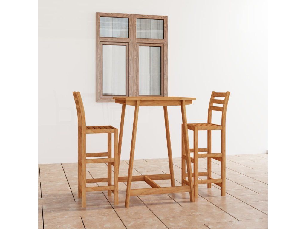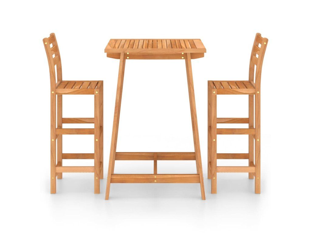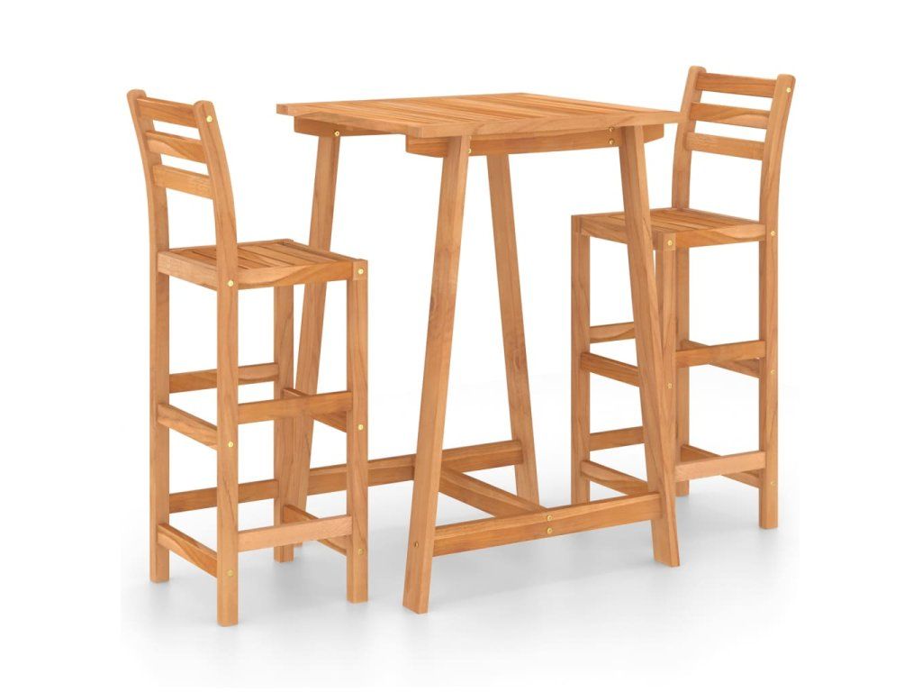 Tento barový set, vybudovaný ze dřeva napuštěného olejem, je odolný, stabilní, snadno se čistí a je klimaticky odolný. Stoličky mají opěradla a opěrky na nohy pro ještě více pohodlí ve chvílích odpočinku.