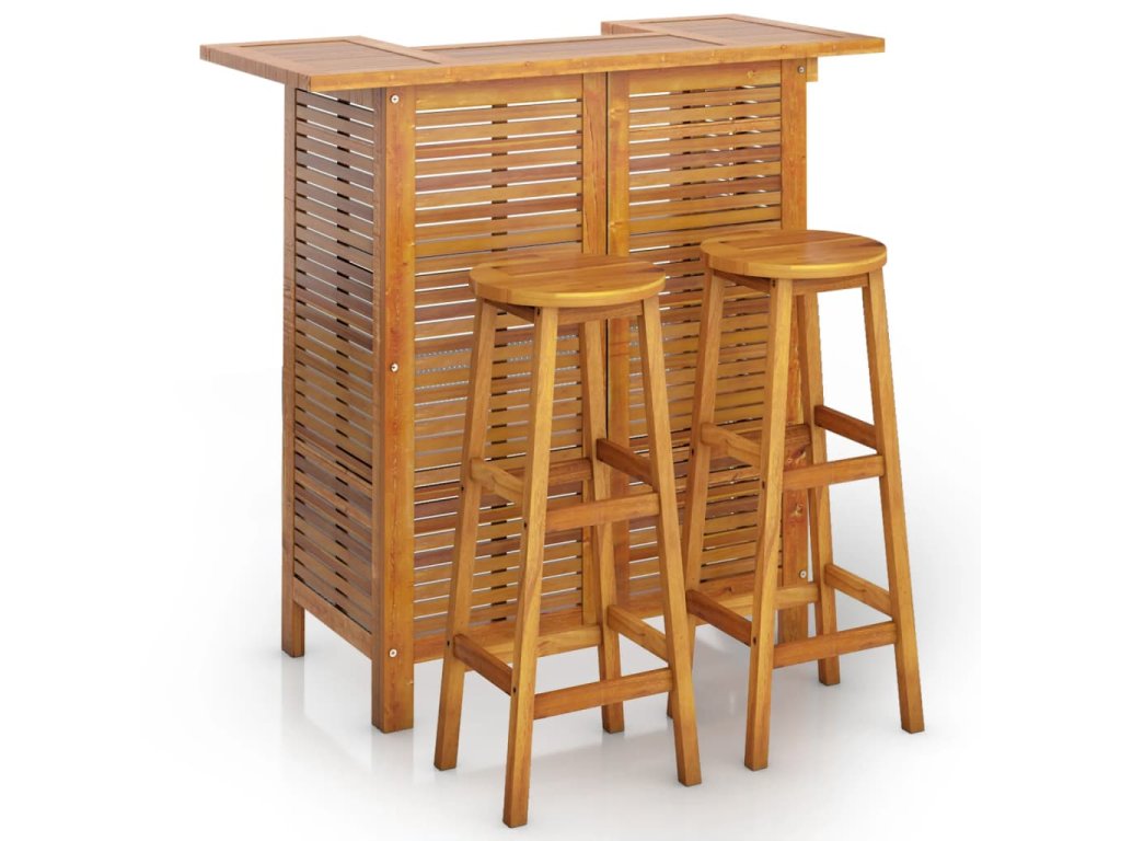 Tento dřevěný zahradní barový set se pyšní elegantním designem a je jako stvořený k tomu, aby se stal dominantou vaší zahrady, dvorku nebo terasy.
