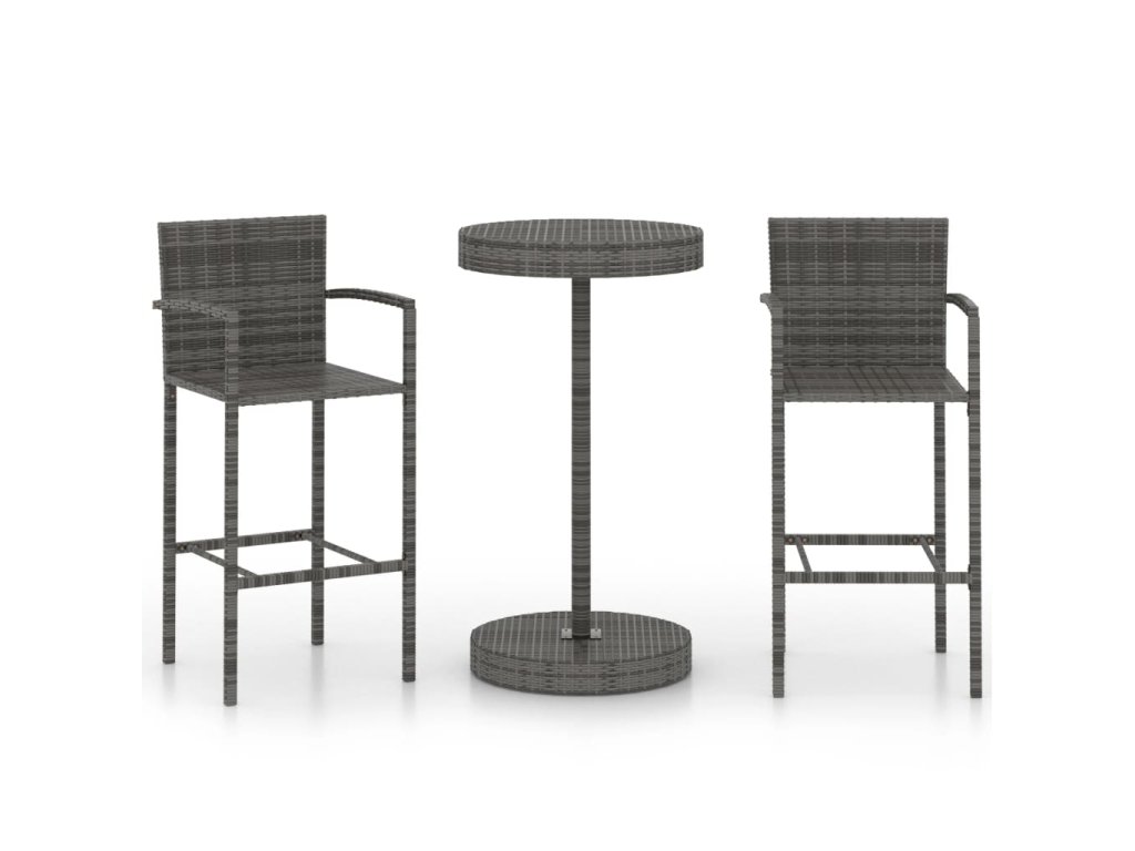 Barový stůl podepírá rám z práškově lakované oceli, který mu dodává na stabilitě a odolnosti. Kulatá stolní deska vám skvěle poslouží k odkládání nápojů a občerstvení nebo k vystavení dekorativních předmětů. Stoličky mají pevnou konstrukci z oceli, která je opletená voděodolným PE ratanem, jsou tedy stabilní a snadno se přesouvají. Opěrka na nohy vám navíc při sezení zajistí větší pohodlí.