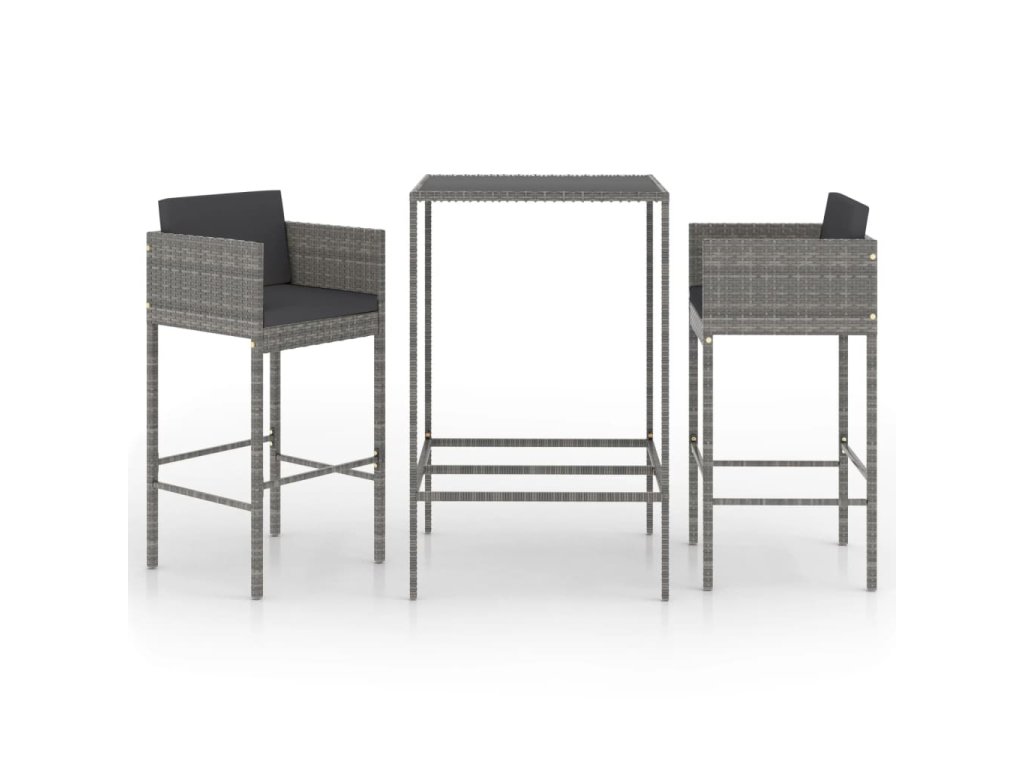 Venkovní barový set je vyrobený z PE ratanu, který výborně vzdoruje vodě i dalším klimatickým vlivům, navíc se snadno čistí, hodně toho vydrží a můžete ho klidně používat každý den. Rám z práškově lakované oceli přidává stolu i stoličkám na odolnosti a prodlužuje jejich životnost. Deska stolu z tvrzeného skla se skvěle hodí k servírování nápojů a občerstvení nebo k vystavení dekorativních předmětů. Opěrky na nohy a podušky dodávají židlím další rozměr pohodlí. Nábytek se vyznačuje lehkou konstrukcí, takže můžete všechny díly bez námahy přesouvat z místa na místo.