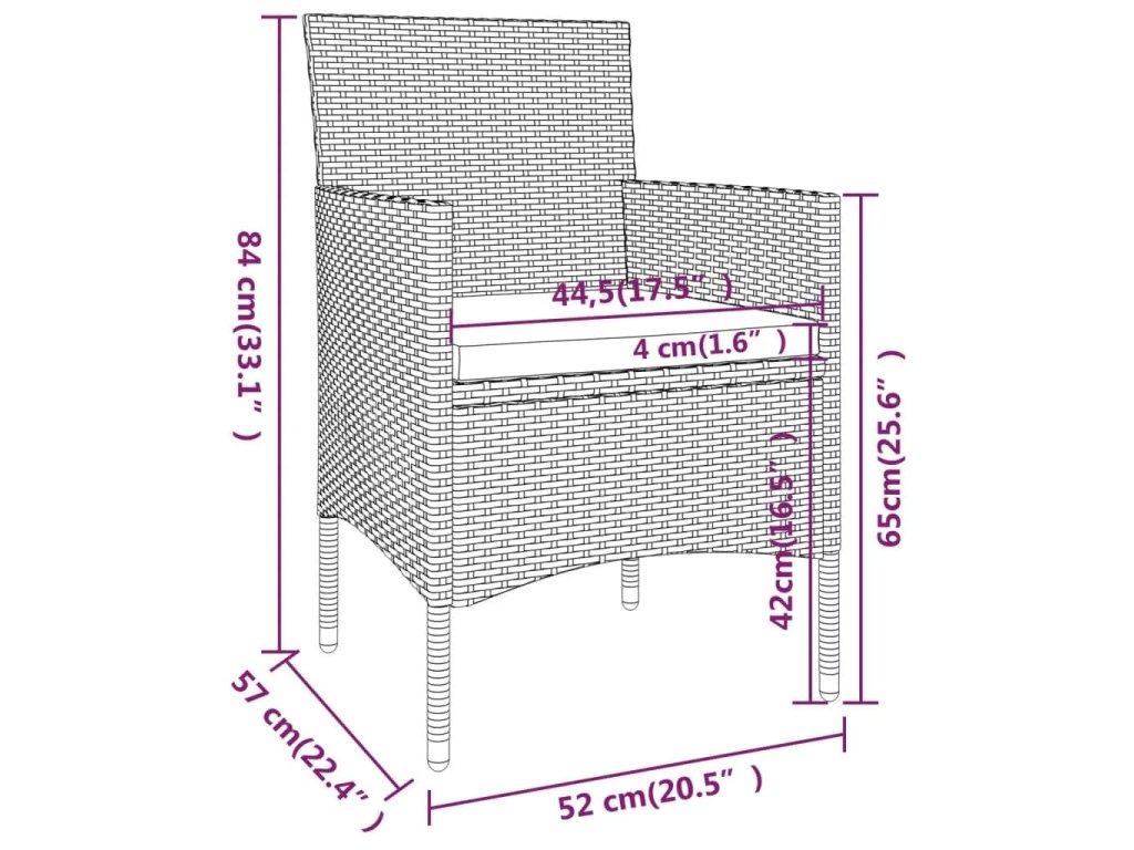 - Prvotřídní materiál: Stůl a židle mají práškově lakovaný ocelový rám opletený PE ratanem, který skvěle odolává povětrnostním vlivům, takže jsou odolné a stabilní.