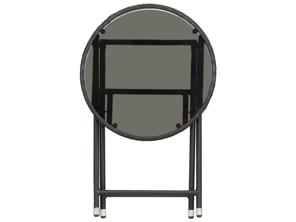 Stůl i židle mají práškově lakovaný ocelový rám je pokrytý klimaticky odolným PE ratanem s ochranou proti UV záření, mají dlouhou životnost a jsou stabilní. Při výrobě židlí se kladl důraz na jejich ergonomický tvar, aby se vám na nich co nejlépe sedělo. Navíc jsou opatřené poduškami pro lepší podporu. Stolní deska z posíleného tvrzeného skla na silném podstavci se snadno čistí a udržuje. Pokud zahradní stolek právě nepoužíváte, můžete ho jednoduše sklopit, a ušetřit tak místo.