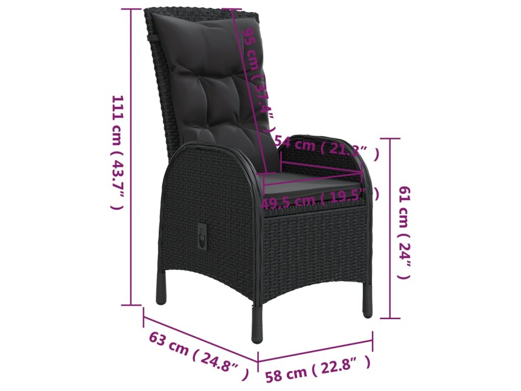 - Pohodlné židle: Zahradní polohovací židle má zaoblené opěradlo a područky, a tím pádem i ergonomičtější tvar pro maximální pohodlí. Součástí balení jsou podušky, které poskytují extra pohodlí. Potah na zip je odnímatelný a dá se snadno vyprat.